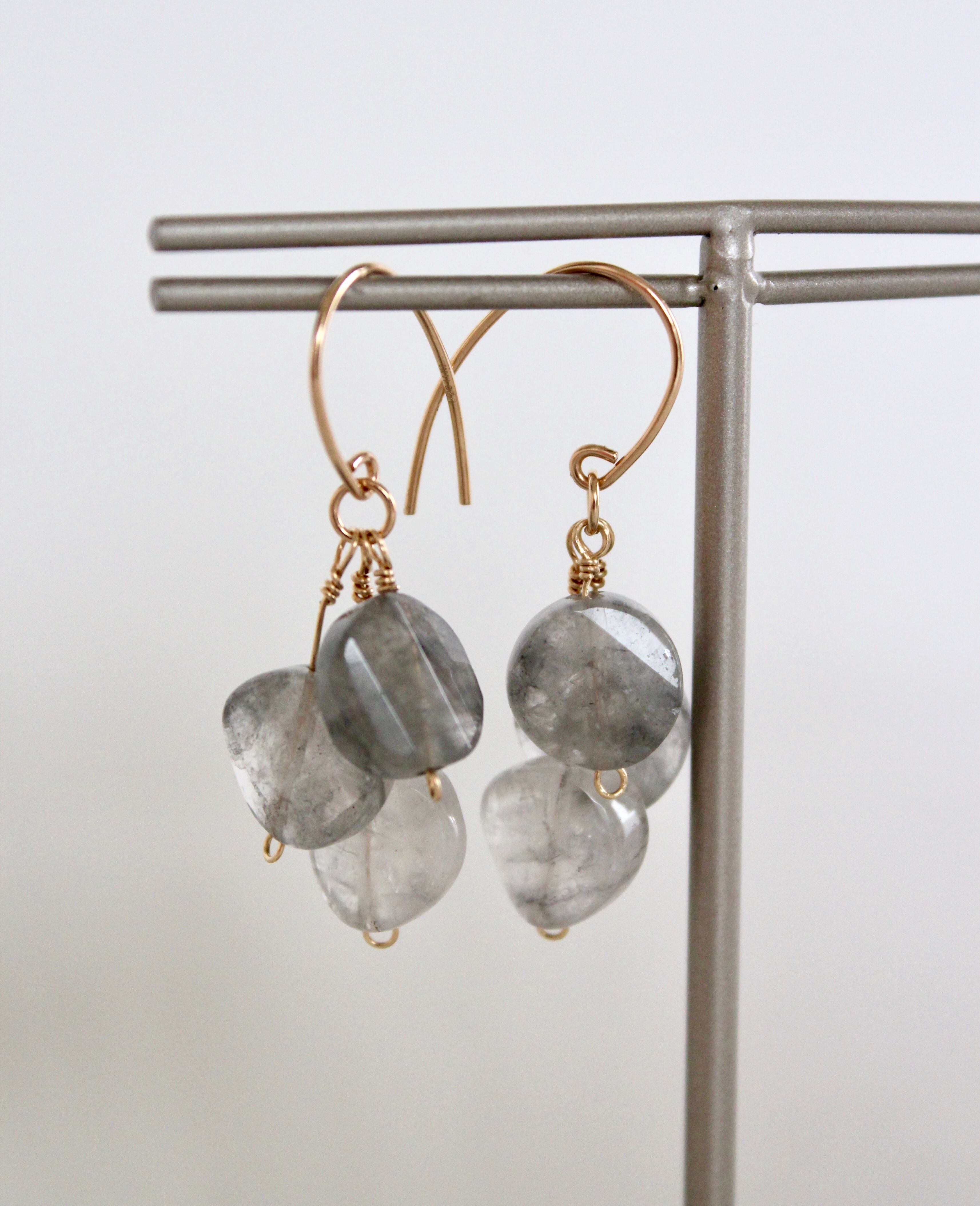 注) クラウディークォーツは天然石の為、一点一点わずかに形や色味が違います。また手作業でお作りしておりますので、写真とは多少形やサイズが変わる場合があります。予めご了承下さいます様お願いいたします。