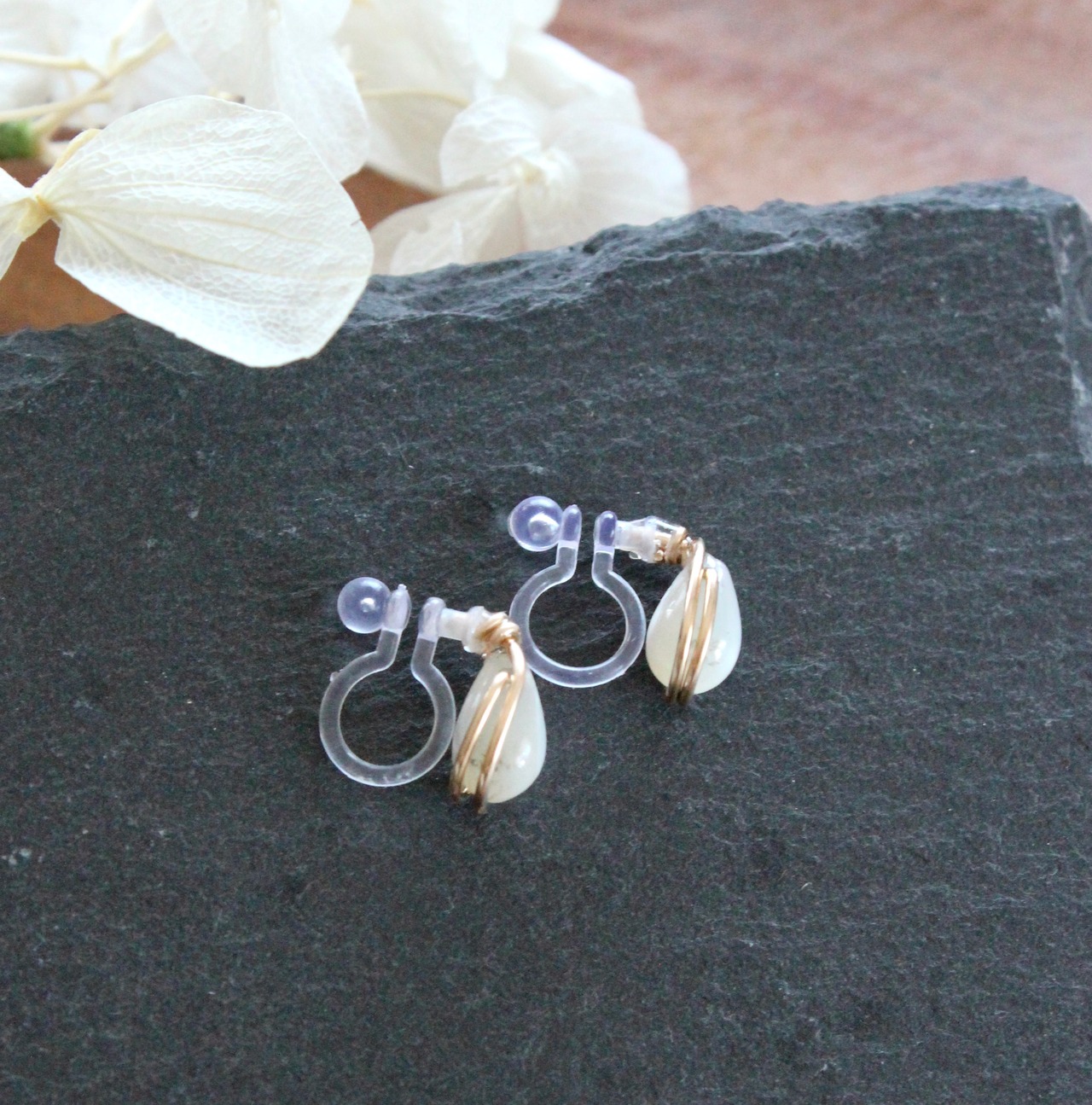 ワイヤーラップ ノンホールピアス シェル シンプル ナチュラル 大人かわいい ノンホール イヤリング ノンホールイヤリング