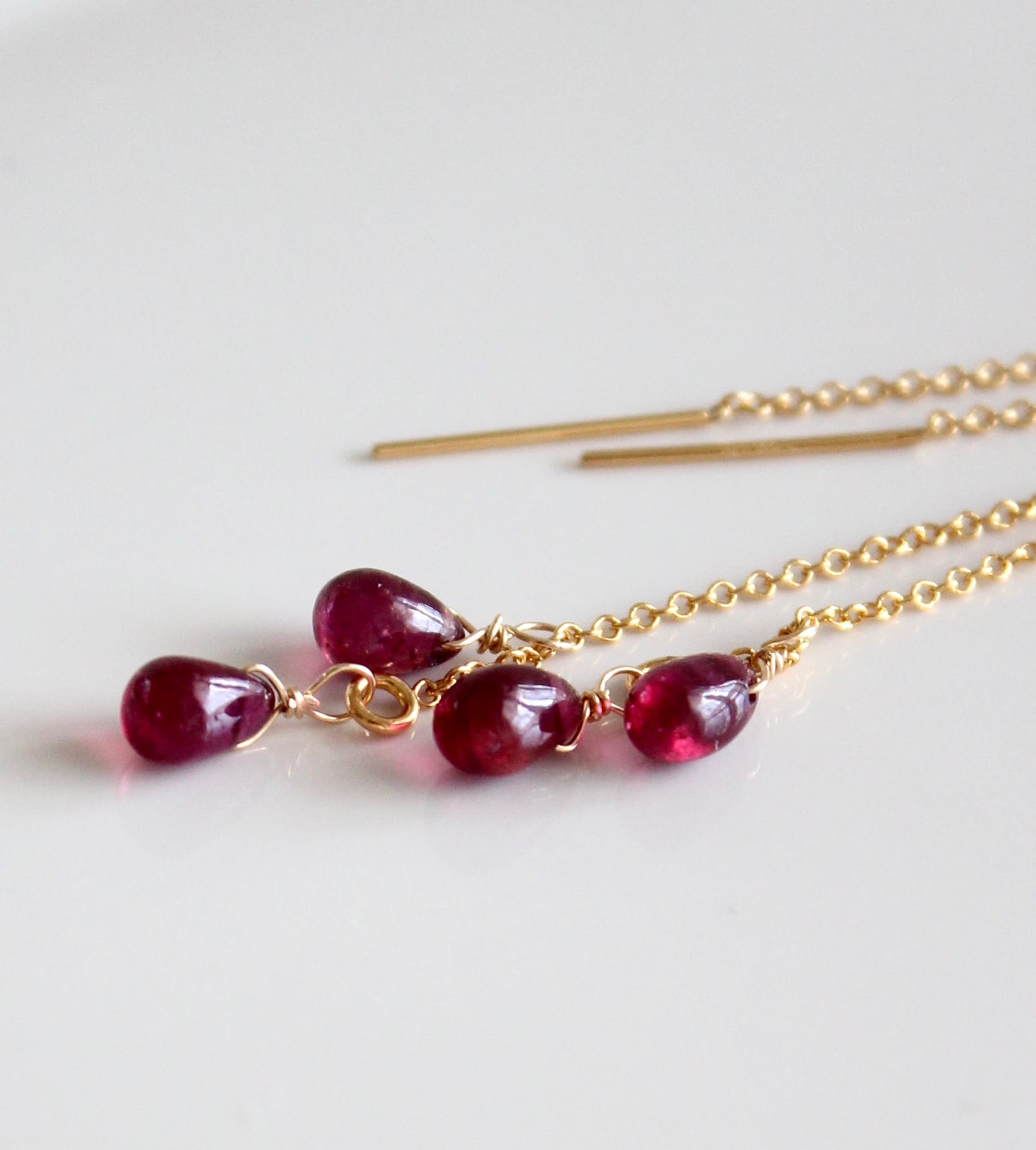 ・:*+. 7月の誕生石 小さな しずく 形の ルビー ( 天然石 )をアメリカンピアスに仕立てました .:+